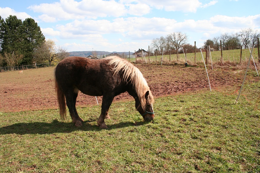 Molly wurde aus einer katastrophalen Haltung gerettet. Die kleine Stute hatte noch nicht viel Schönes in ihrem Leben erlebt. Sie kam unterernährt und krank zu uns. Durch die schlechte Haltung und schlechte Fütterung waren ihre Zähne in einem äußerst schlechten Zustand. Sie konnte nur unter Schmerzen fressen. Nach einem Check in der Klinik wurden Molly gleich 2 Schneidezähne gezogen. Die anderen Zähne wurden saniert. Da die Zähne nicht korrekt übereinander stehen, nutzen sie sich beim Kauen nicht ab und es entstehen kleine Haken, die der Stute große Schmerzen bereitet. Deshalb muss Molly 2 Mal im Jahr in die Klinik um die Zähne zu raspeln. Gerade jetzt im Mai 2015 mussten Molly wieder zwei Zähne gezogen werden, und mittlerweile bekommt sie ein Spezielfutter. Molly ist ein so liebes und nettes Pony. Wenn die Pfleger auf die Weide kommen, dann kommt sie schon angetrabt und will schmusen. Selbst wenn die anderen Pferde schon ihr Kraftfutter fressen, bleibt Molly noch zum Schmusen stehen. Mit ihren großen, schwarzen Kulleraugen sagt sie uns immer wieder aufs Neue, Danke.